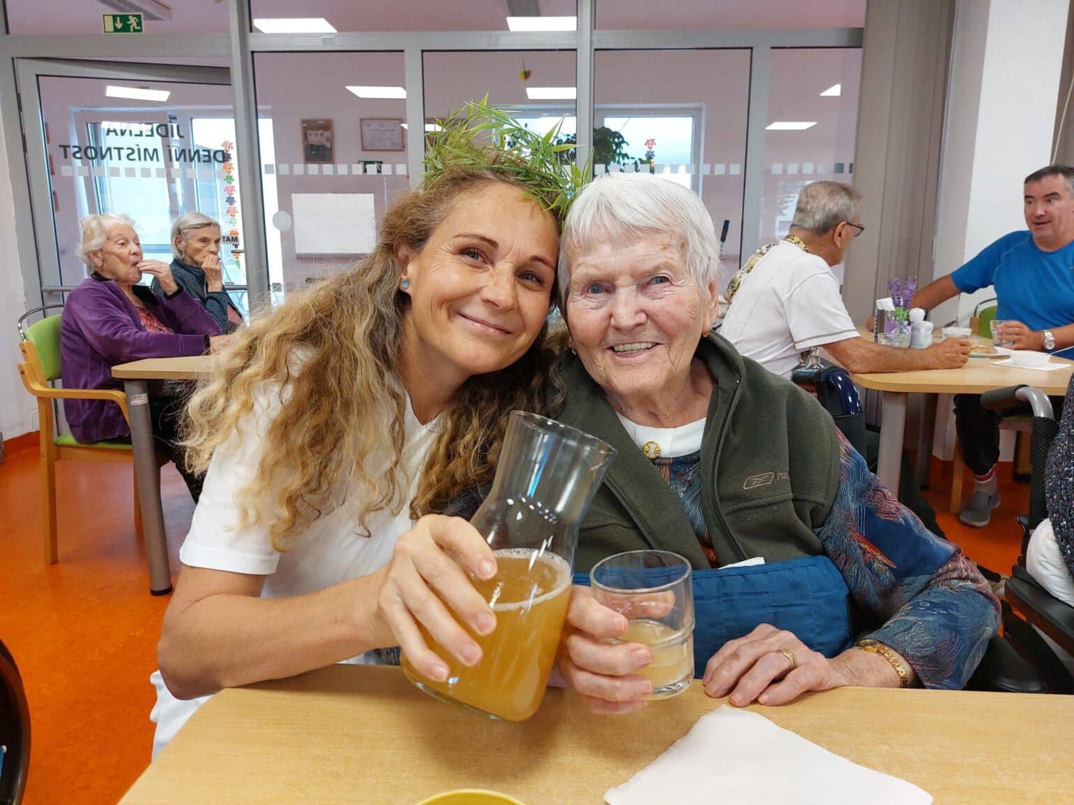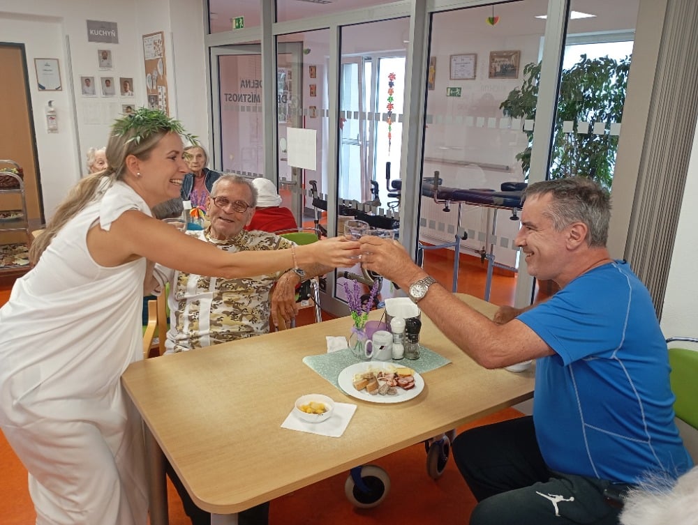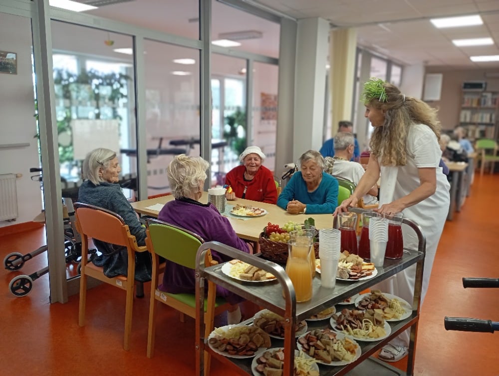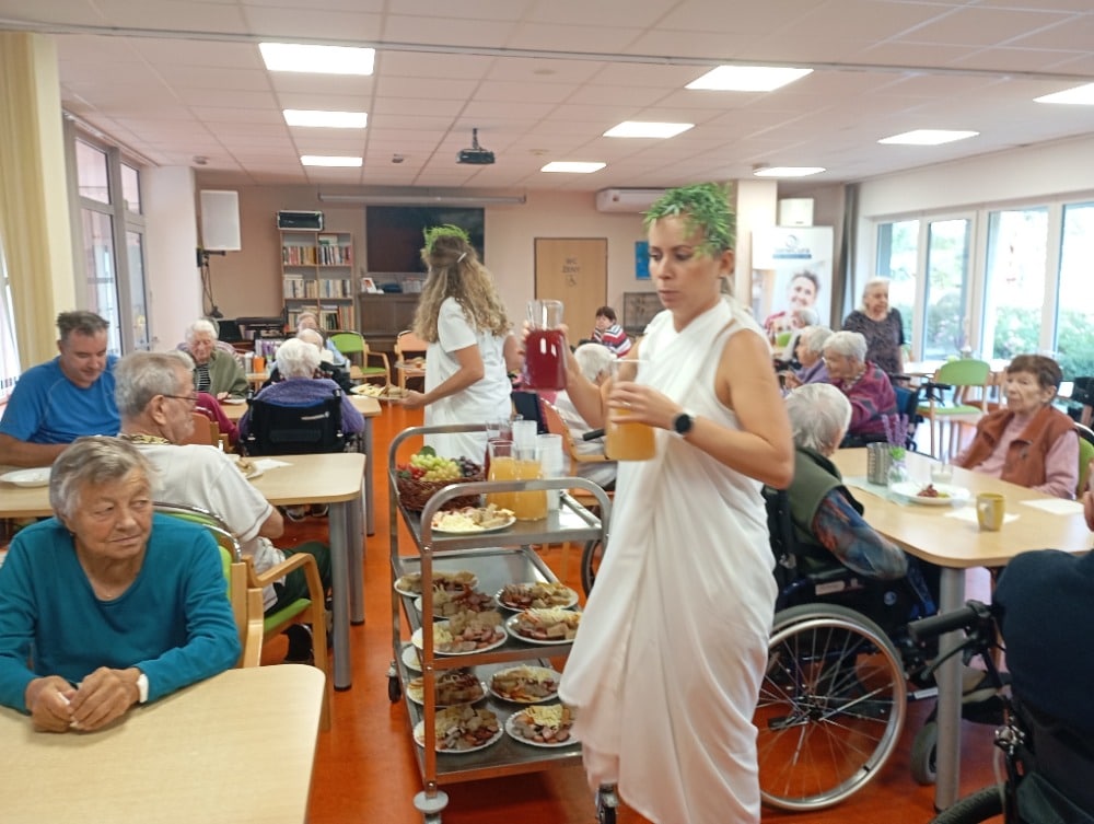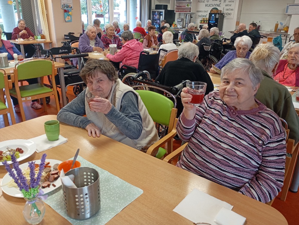 Pro méně pohyblivé klienty se ochutnávka uskutečnila individuálně přímo na pokojích. Celé dopoledne se neslo v duchu přátelské nálady, dobrého jídla a vůně čerstvého burčáku.