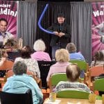 Během svého vystoupení ukázal řadu klasických triků, při kterých se v rukou měnily šátky, mizely mince a z klobouku se objevovaly neuvěřitelné předměty. Jeho vystoupení bylo zábavné i tím, že téměř po celou dobu zapojoval do svých triků a kouzel i publikum. A to jak děti, tak i naše seniory.
