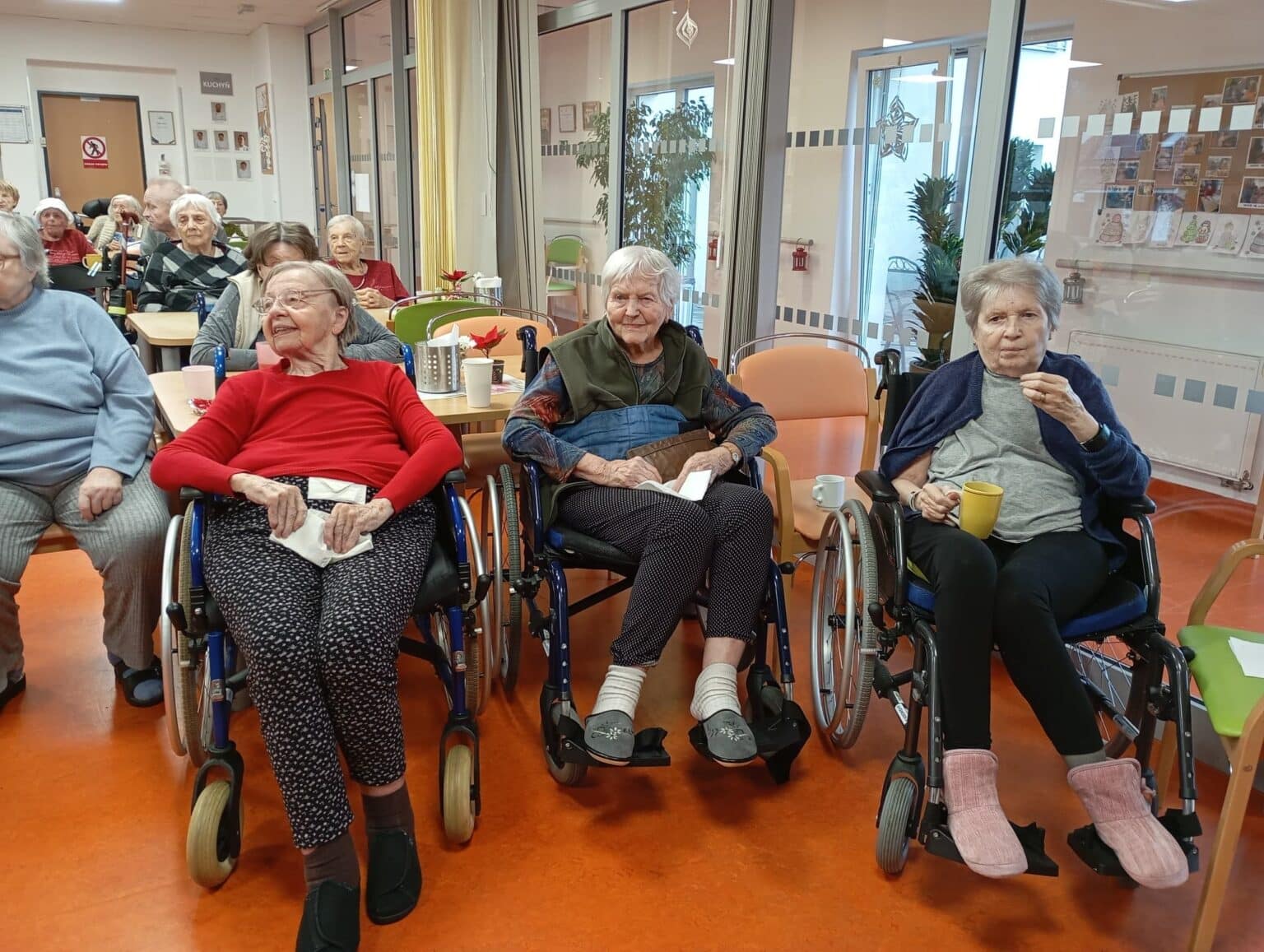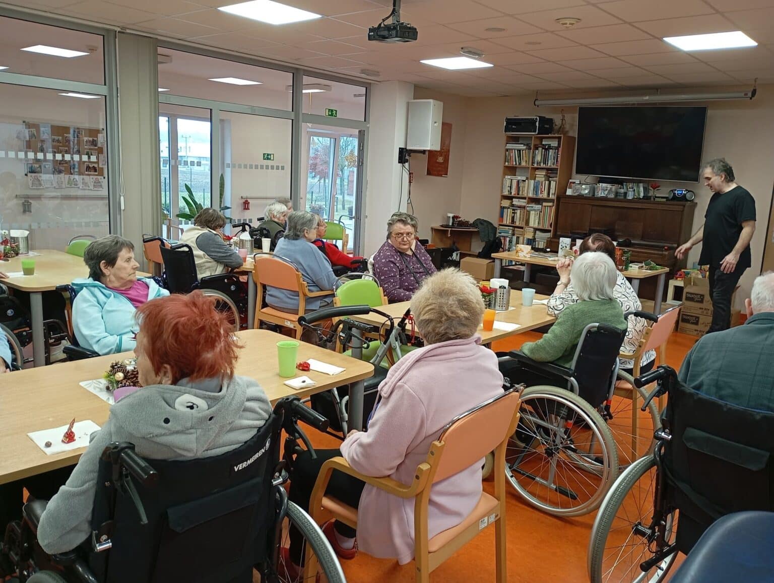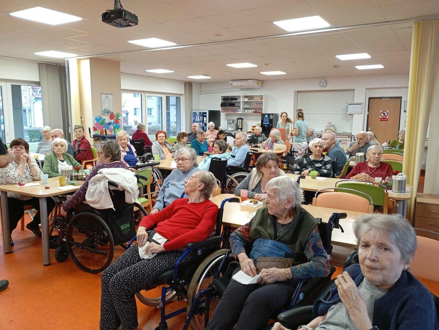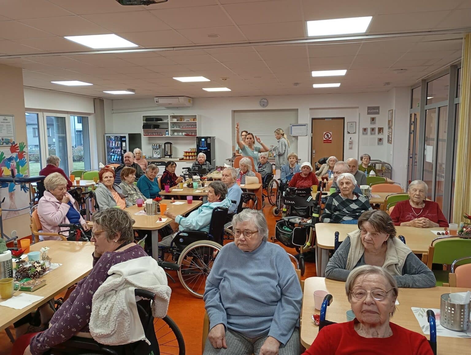 Celá akce probíhala v příjemném prostředí jídelny, kde se senioři zapojili do ochutnávání, sdíleli své dojmy a diskutovali o svých oblíbeným druzích čokolády. Atmosféru dotvářela pohodová hudba a úsměvy všech zúčastněných.