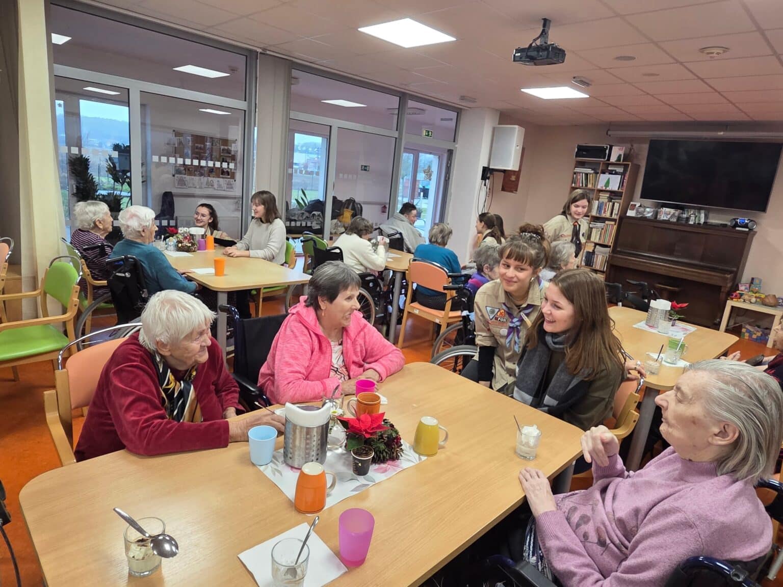 Tentokrát našim klientům udělaly radost děti z MŠ Střední Novosadská a Rožňavská, dále školáci ze ZŠ sv. Voršily a ZŠ Tererovo nám. Ani o víkendu se naši klienti nenudili, protože nás navštívili skauti z Olomouce.