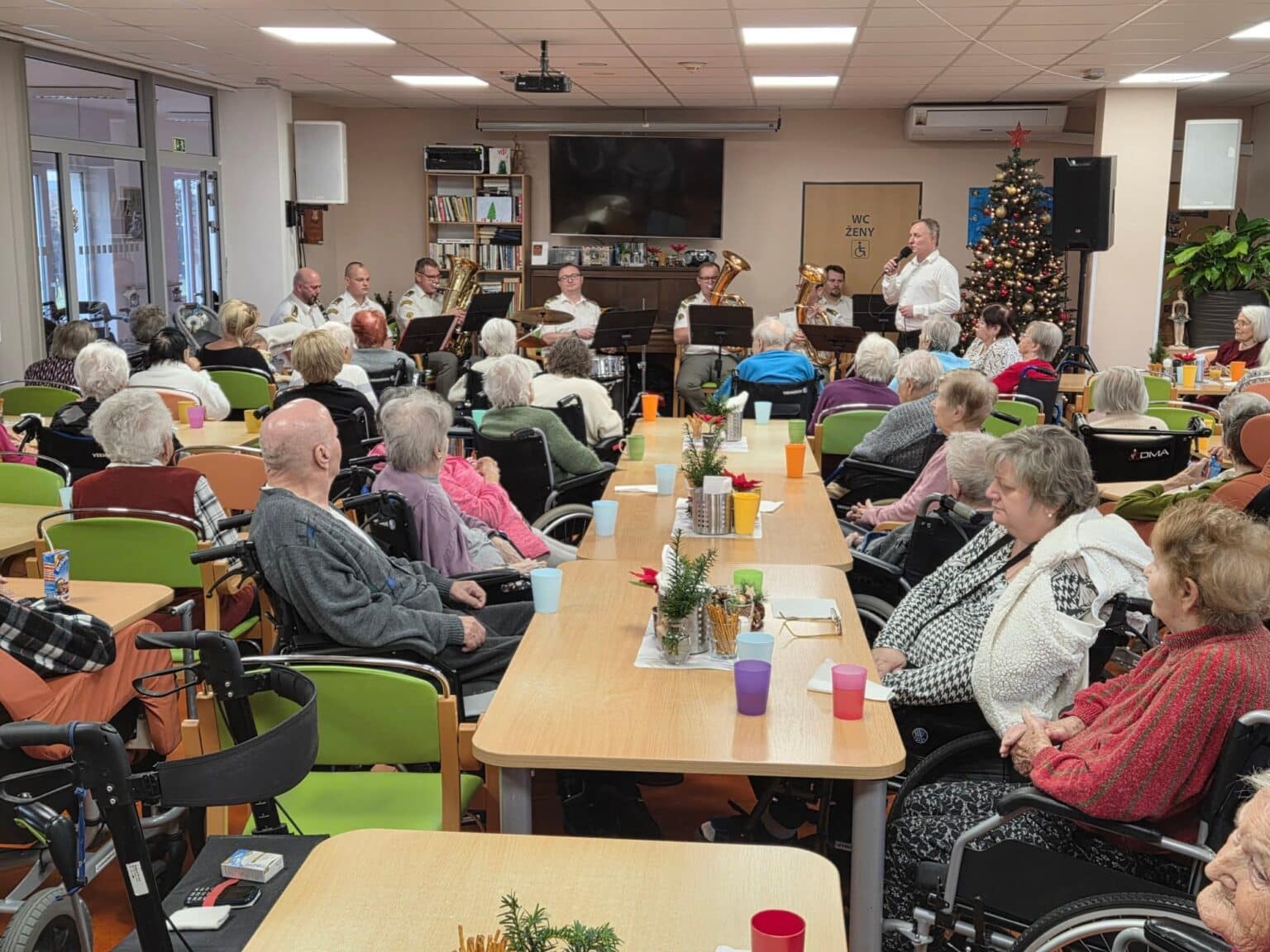 Už tradičně nás v předvánočním čase navštěvuje Vojenská hudba Olomouc. Celou naší společenskou místností se rozezněly známé Vánoční písně v jejich podání. Všem klientům se tento koncert moc líbil a už teď se těšíme na příští rok, až k nám opět tito neuvěřitelní muži zavítají.